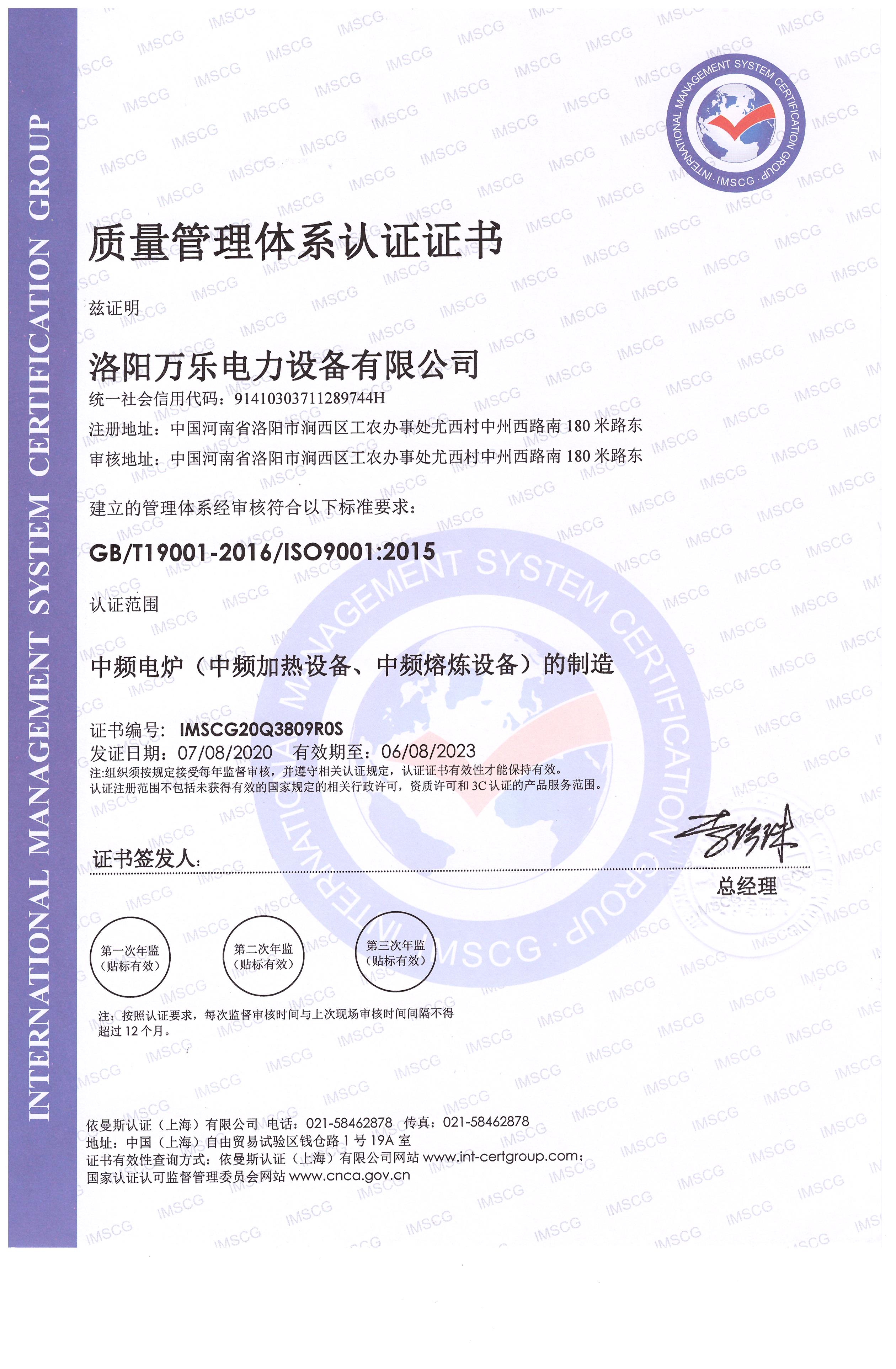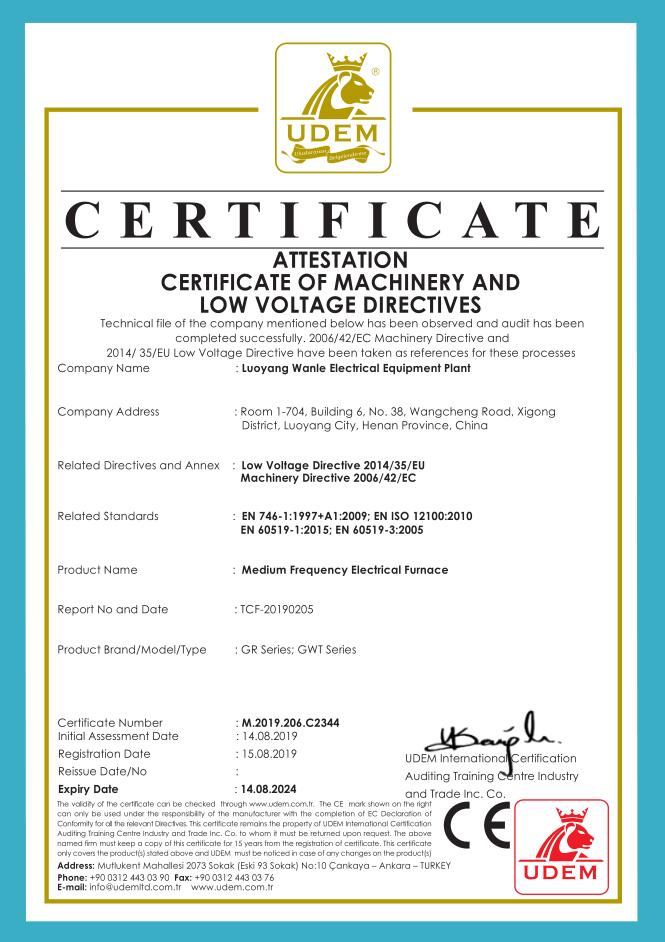 洛阳万乐电力设备有限公司 原 洛阳万乐电力设备厂成立于1992年,1993年经洛阳市科学技术委员会批准认定为高新技术企业。二十七年一路走来,我们始终走在国内中频感应熔炼应用技术的前沿。1995年我公司在国内生产出了1.5T、750KW中频熔炼炉。