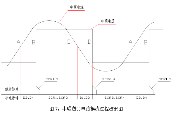 4.2、串联逆变电路的换流过程 在串联逆变电路的结构条件下,负载电路工作时,与并联逆变电路不同的是,桥臂元件交替导通过程中,桥臂SCR元件的导通角小于180º,SCR元件导通角的补角范围内...